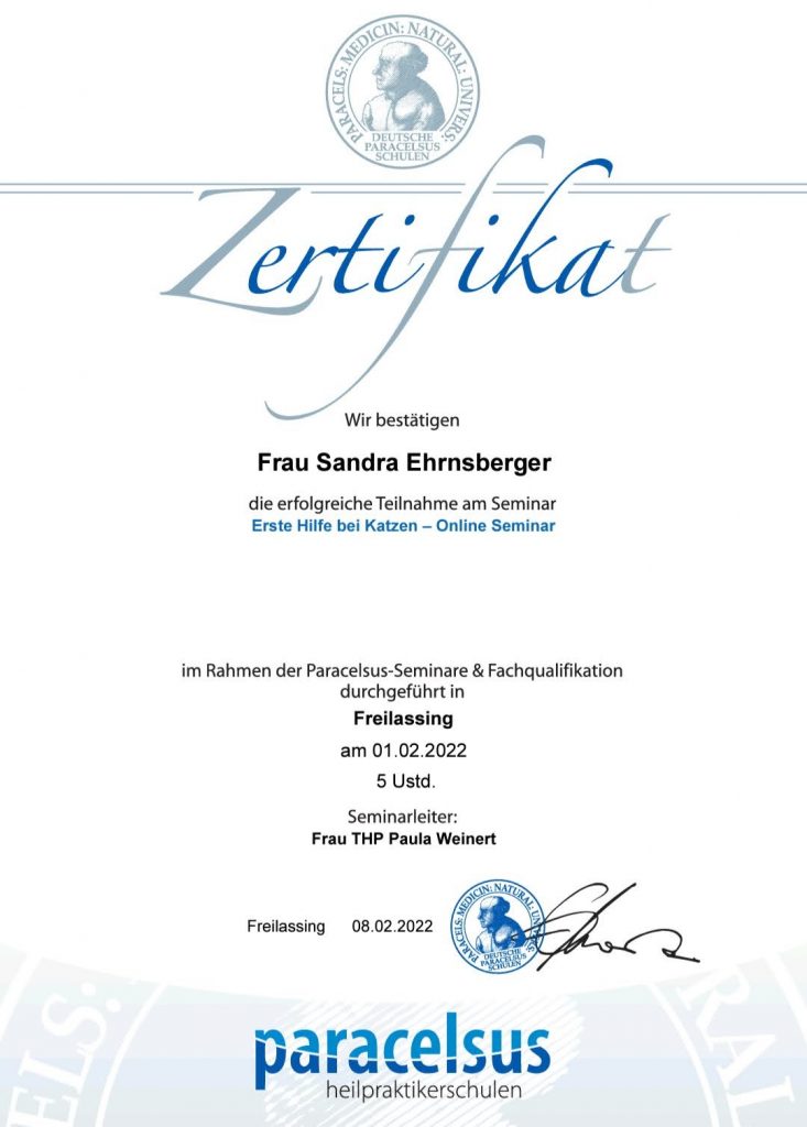02/2022: Seminar „Erste Hilfe bei Katzen